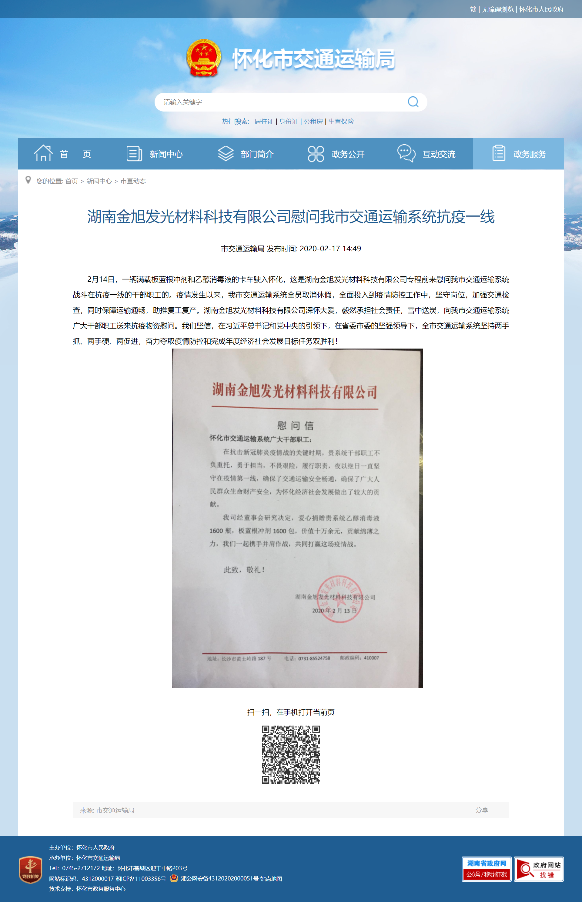 一方有難八方支援,疫情無情人間有愛,金旭科技用行動援助懷化市交通運輸系統廣大干部職工